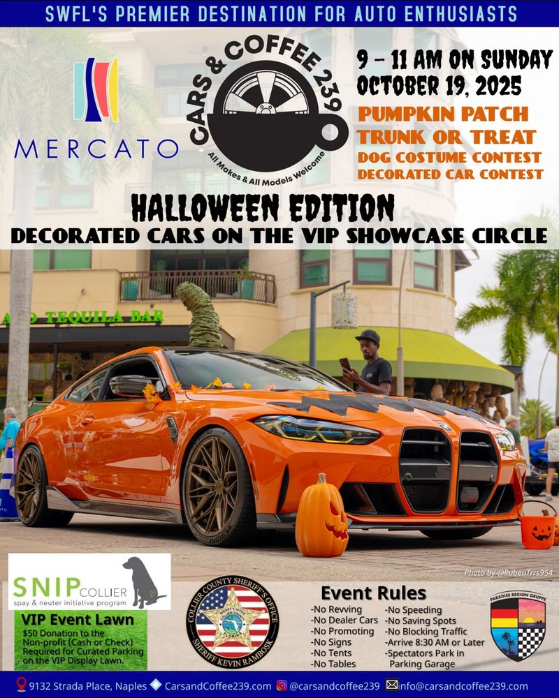 CCSO Deputies will be on duty at both entrances to the Mercato, on Vanderbilt Beach Road and at US-41. They will also have two deputies in the traffic circle near Rocco's Tacos with a vehicle on display for the automotive enthusiast community at Cars and Coffee 239.